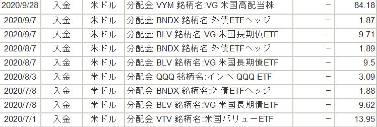 国内の投資信託と違い、海外ETFの分配金は、「自動再投資」ということができない(と思う)ので、証券会社の口座にドルで入金されます。
