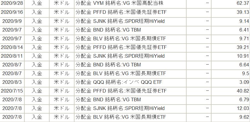 最近は時々口座を開くと、ドルが勝手に増えているので、それで次のETFを買い増しするのは嬉しいです。
