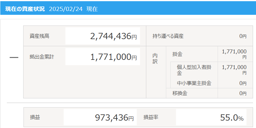 以前、iDecoの60歳積み立て終了時には300万になっているといいなと書きましたが、現在の様子でいくと、ほぼ達成できるのではと思っています。